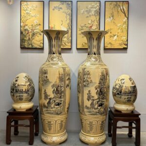 Lộc Bình Gốm Chu Đậu Lộc Bình Gốm Chu Đậu 1M55 Sơn Thuỷ Hữu Tình & Trứng Tài Lộc H45 Vẽ Vàng 24K