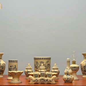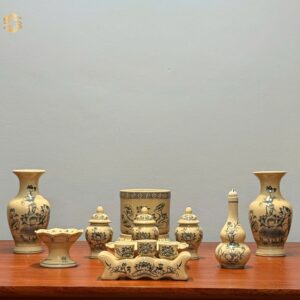 Bộ Đồ Thờ Gốm Chu Đậu Hoạ Tiết Hoa Sen Men Truyền Thống Ban Dài 175cm – 217cm