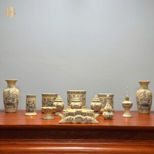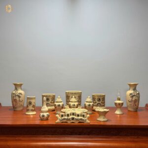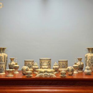 Bộ Đồ Thờ Gốm Chu Đậu Hoạ Tiết Rồng Vẽ Vàng 24K Ban 175cm – 217cm