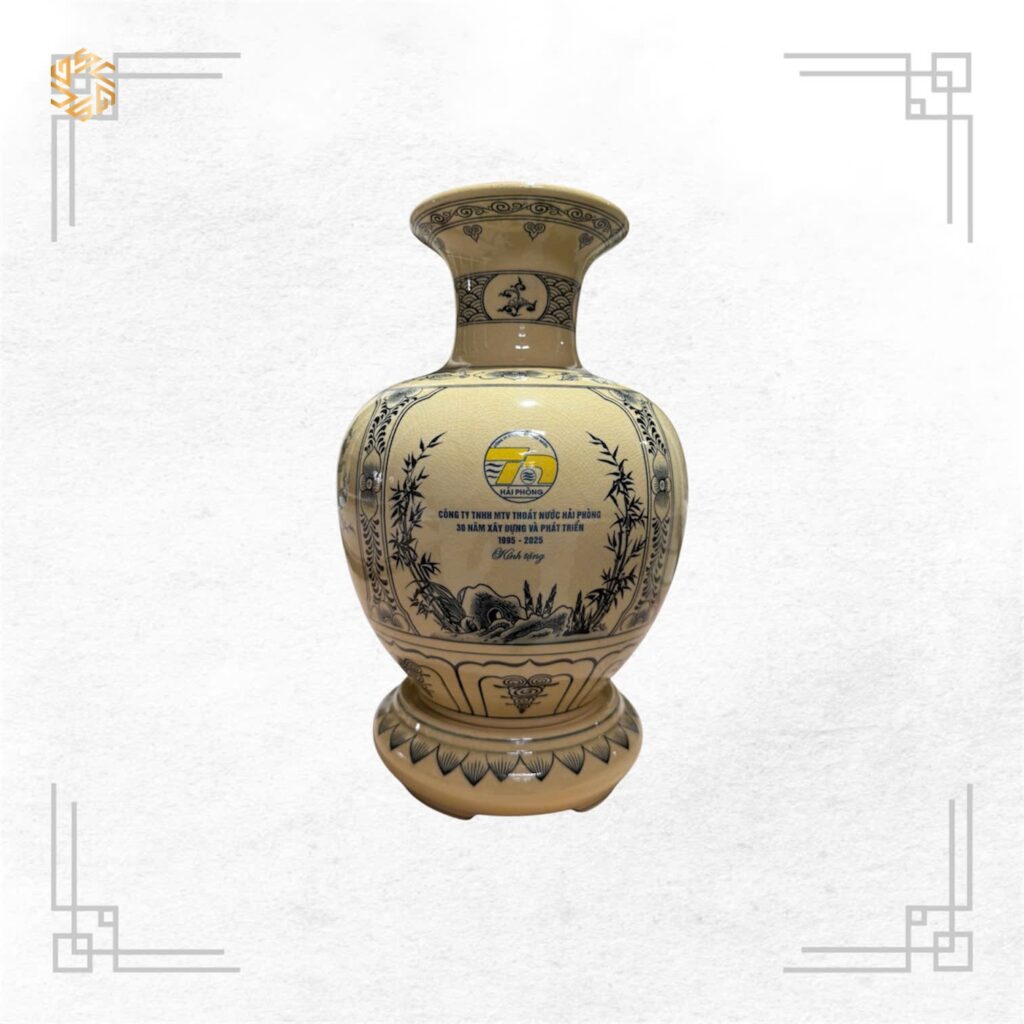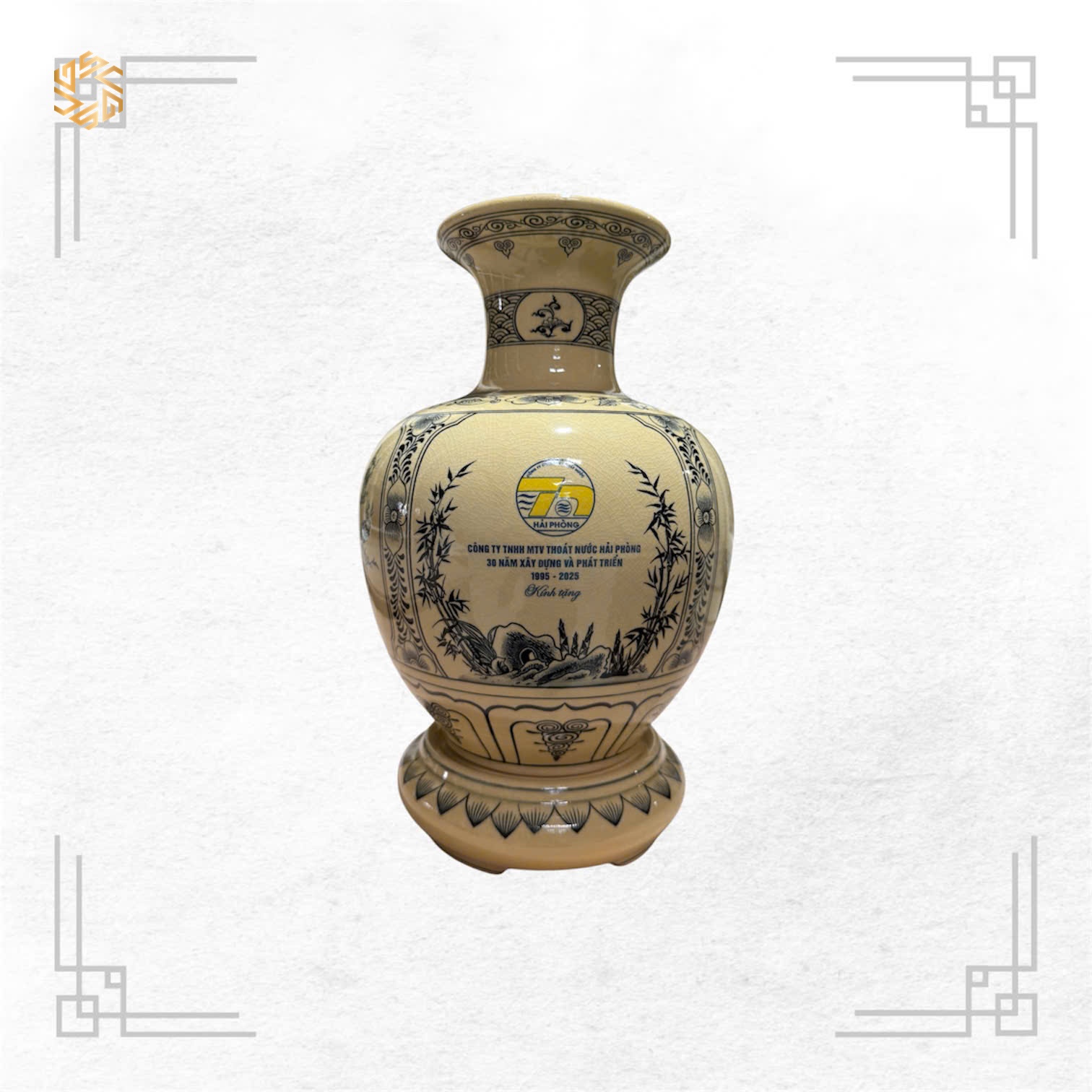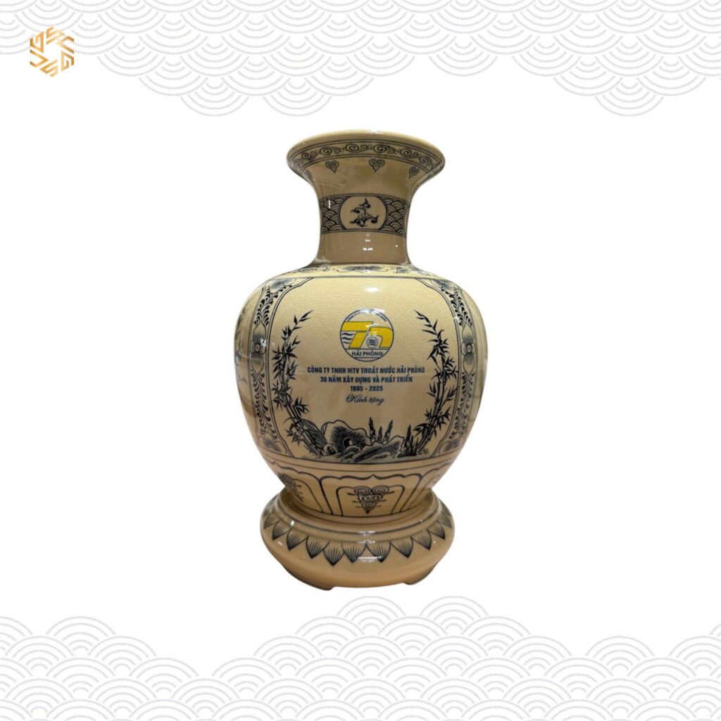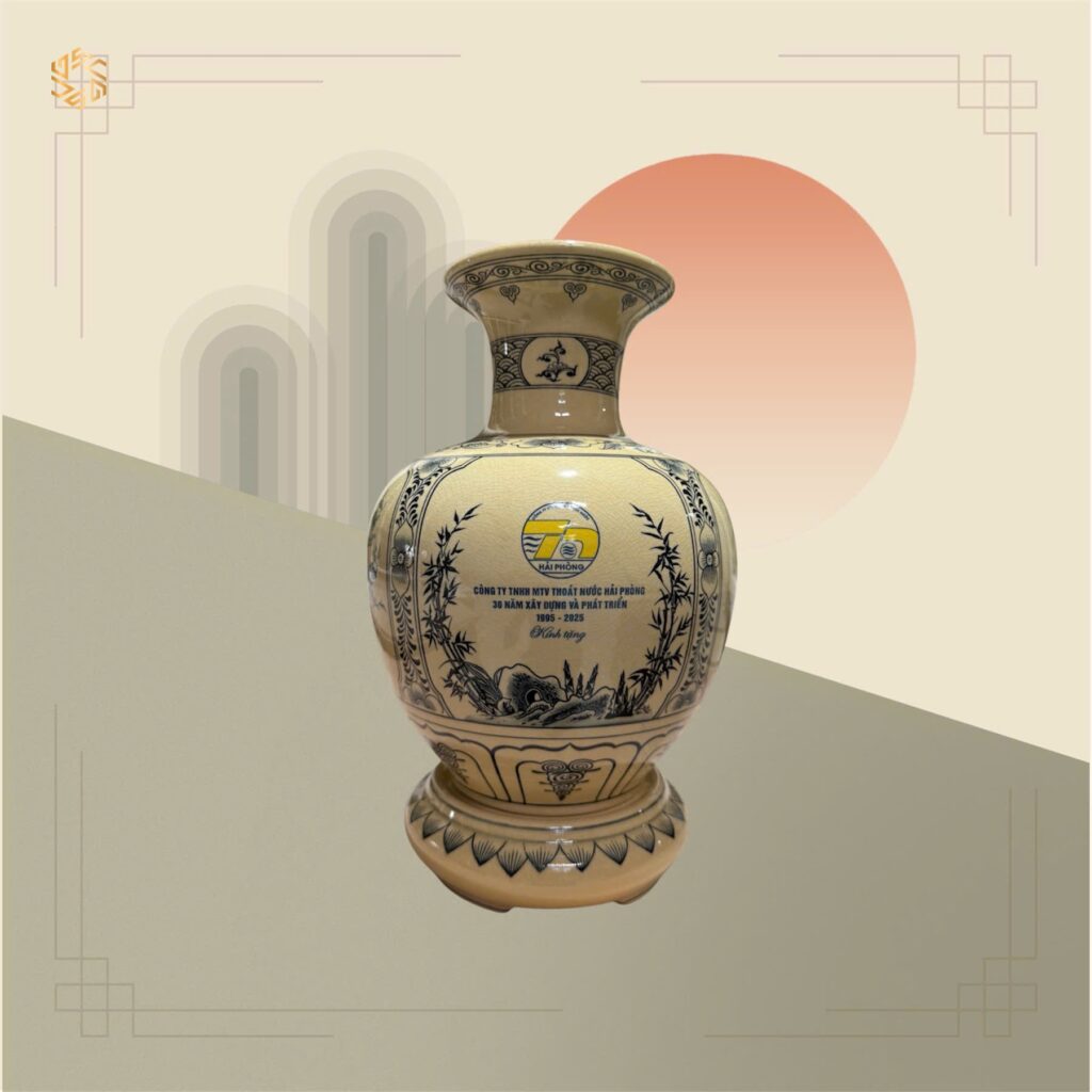 Quà Tặng Gốm Chu Đậu Bình Phượng Hoàng Tứ Cảnh. Logo Theo Yêu Cầu, Hộp Đựng Ý Nghĩa