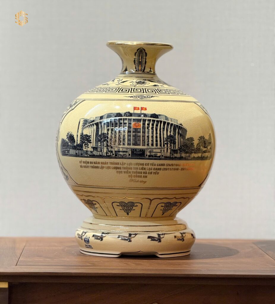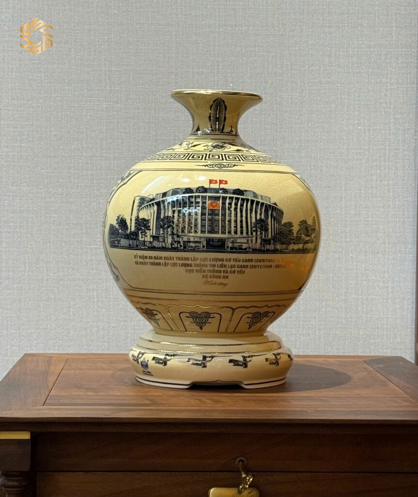 - Chất liệu: Gốm men truyền thống, LOGO theo yêu cầu. Vẽ vàng 24k theo yêu cầu, độc bản theo từng sự kiện của quý khách hàng.