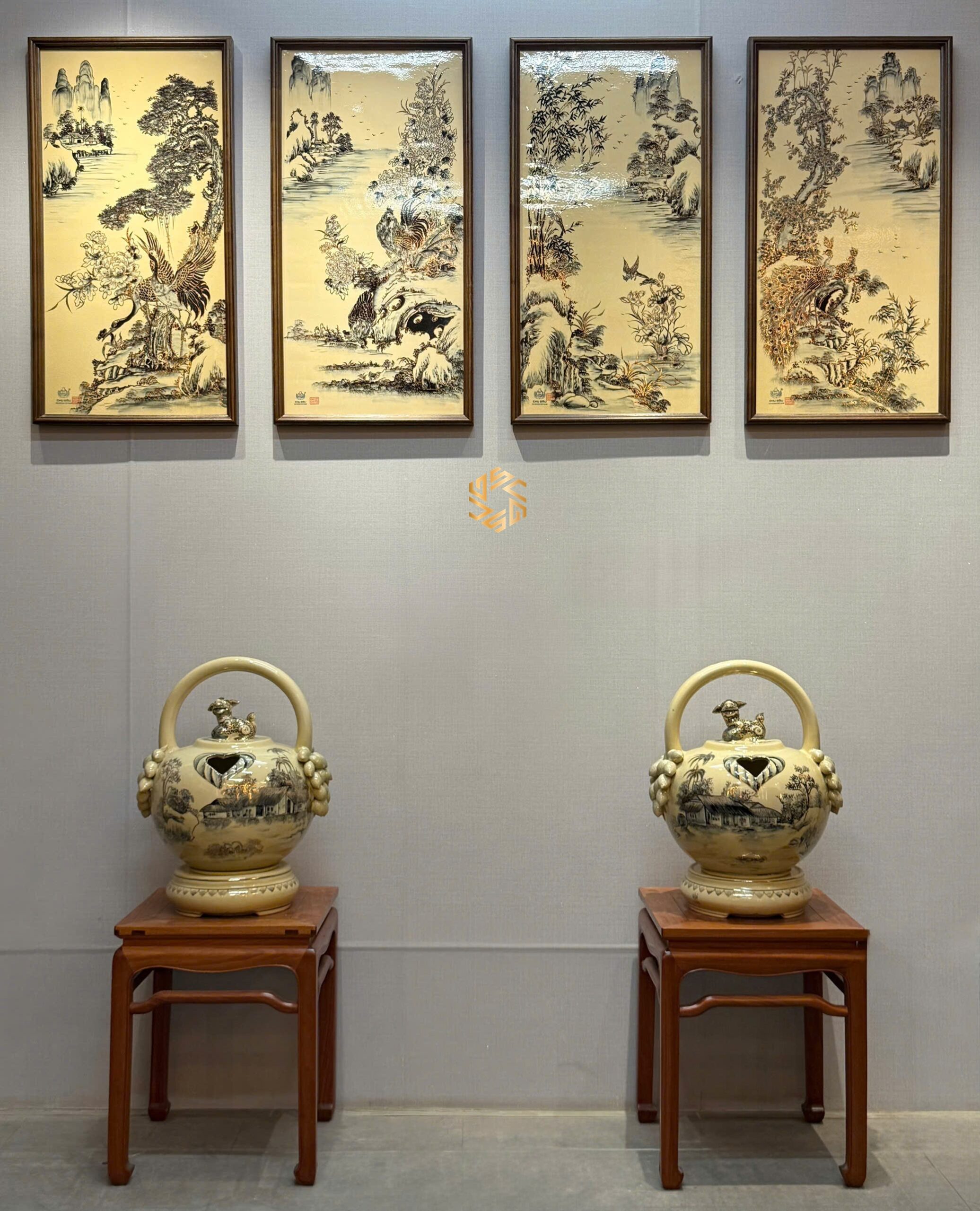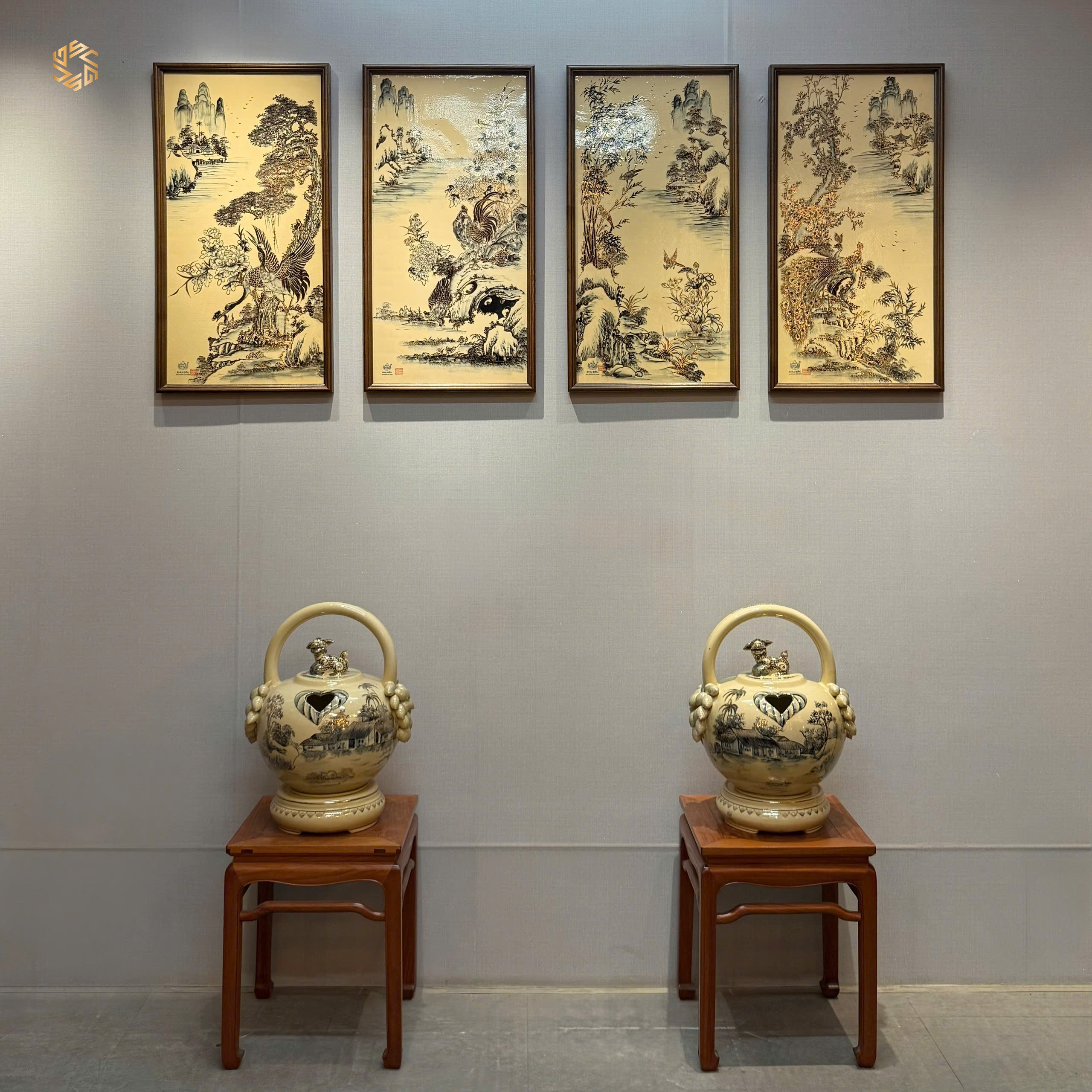 - Tranh gốm Chu Đậu Tứ Cảnh (Xuân – Hạ – Thu – Đông) mang vẻ đẹp văn hóa, chiều sâu nghệ thuật và giá trị thẩm mỹ bền vững. Dòng tranh này đặc biệt phù hợp với những không gian trang trí đề cao sự tinh tế, sang trọng và bản sắc Việt